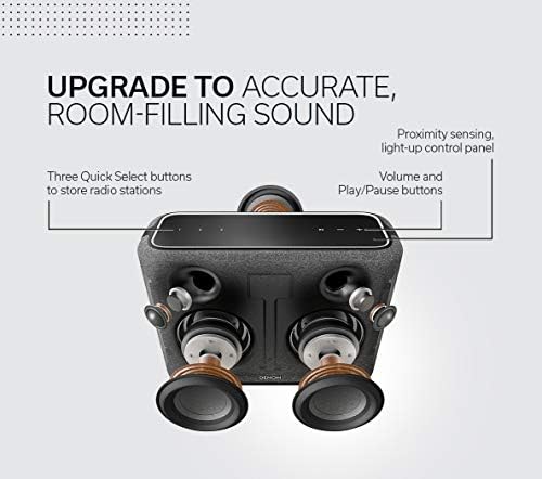 HI-RES AUDIO, WITHOUT THE HI-FI SYSTEM – Featuring (2) dynamic 0.75″ tweeters, (2) 4″ bass drivers, a 5.25″ passive radiator & sound master tuning, the Denon Home 250 gives you clear highs & deep lows for an exceptional sound quality from a single speaker