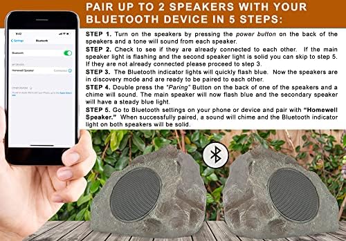 BLUETOOTH 5.0 – The speaker can be paired via Bluetooth with a range of about 30+ feet depending on obstructions and environmental factors. With just a touch of a button connect your Bluetooth enabled device and listen. Add a 2nd Homewell Rock Speaker for a more immersive experience.