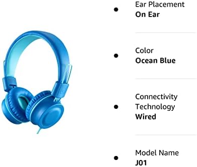 iRAG J01 Kids Headphones Foldable Stereo Tangle-Free 5ft Long Cord 3.5mm Jack Plug in Wired On-Ear Headset for iPad/Amazon Kindle,Fire/Toddler/Boys/Girls/School/Laptop/Travel/Plane/Tablet(Ocean Blue)