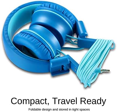iRAG J01 Kids Headphones Foldable Stereo Tangle-Free 5ft Long Cord 3.5mm Jack Plug in Wired On-Ear Headset for iPad/Amazon Kindle,Fire/Toddler/Boys/Girls/School/Laptop/Travel/Plane/Tablet(Ocean Blue)