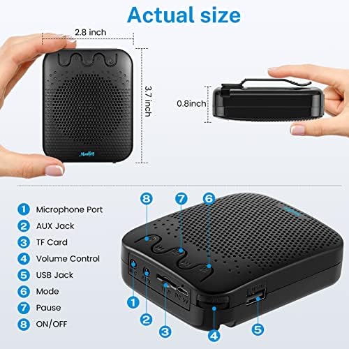【Compact and Easy Carry Around】The portable microphone speaker is in compact size and super lightweight, it comes with a waistband which can attaches with clips to the amplifier and then you can also tie it around your waist or hang it on your neck.