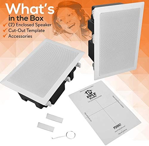 The Pyle enclosed speaker systems delivers stereo sound to any room in your home or office without cluttering floor space. The dual speaker pair feature long-throw woofers that can be used for virtually any in-wall or in-ceiling application. They are perfect for custom installations since they mount flush for a clean and professional look. Additional speaker features include 1-inch titanium dome tweeters, 1-inch high-temperature voice coils, along with an impressive high-power output for full range stereo sound reproduction. Fill the room with high-efficiency audio frequency response rates for rich, dynamic sound performance. The form-fitting speaker design and vented housing enclosures deliver impressive bass response — with convenient speaker terminals that allow for quick and hassle-free speaker wire connection. Included cut-out template makes installation even easier. Achieve wide-ranged sound performance and add audio to any room with the Pyle In-Wall / In-Ceiling Speaker Systems. Sold as pair.