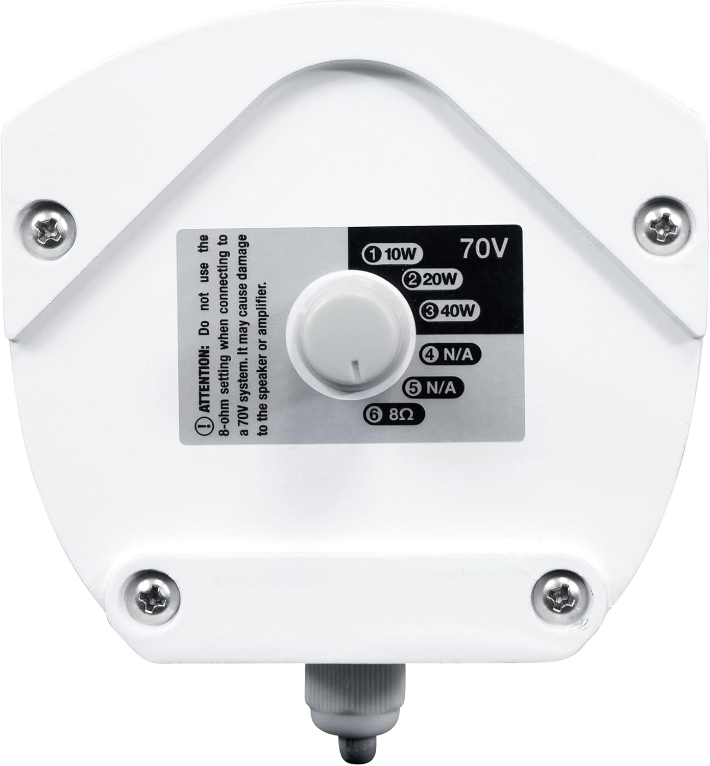IP66 waterproof rating. All mounting hardware is waterproof and rustproof. Sensitivity: 88dB. Waterproof spring loaded terminals. Built in transformer supports 70V installations. Built in tap switch to easily select your 70V power.