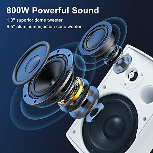 GREAT SOUND: The wall mountable speaker system powers a 6.5” aluminum injection cones subwoofer and 1.0” superior dome tweeters for added bass response, achieving crisp sounds and filling your area with clean highs, while feeling the deep bass response from the articulated sound enclosure. Long-throw subwoofers and impressive power output levels will give you sound satisfaction!